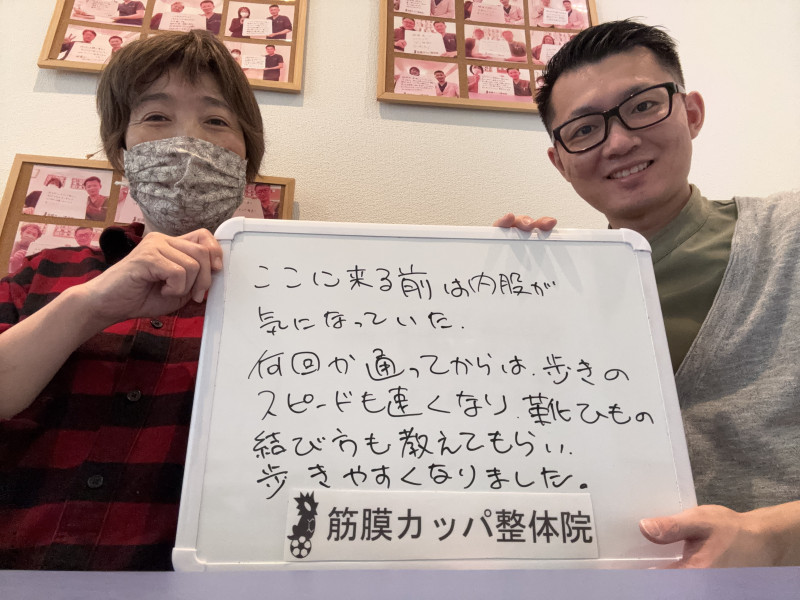 Q、以前ここの前に整体とか受けられたことはありますか。それと比べてみて、どのような感じがしますか。 A、はい。近所の整体は体全体のマッサージのようで気持ち良い。筋膜カッパ整体はポイントを突いて、集中しての治療で安心。